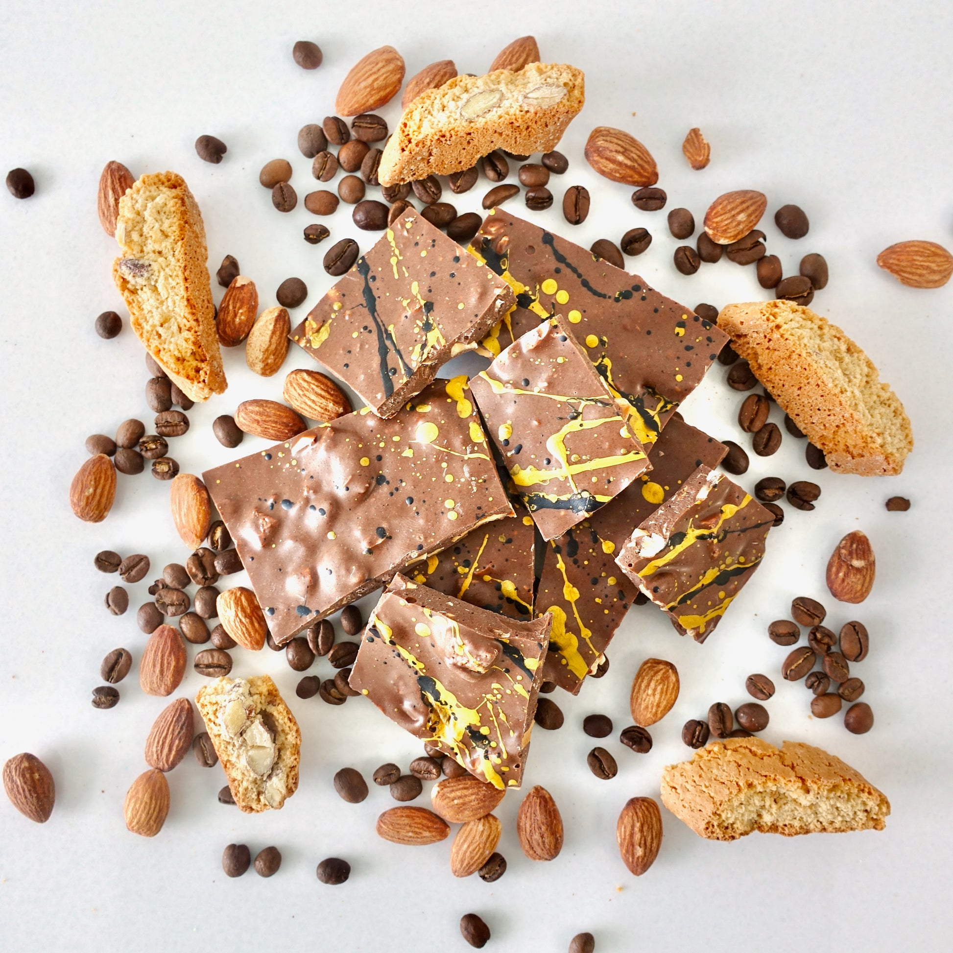 A delightful crunch of 34% Belgian milk chocolate, infused with almonds, locally roasted espresso beans, and almond biscotti, delivering a perfect balance of flavour and texture.